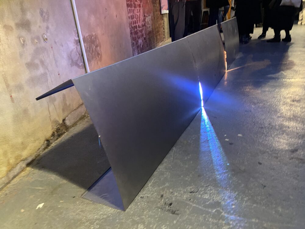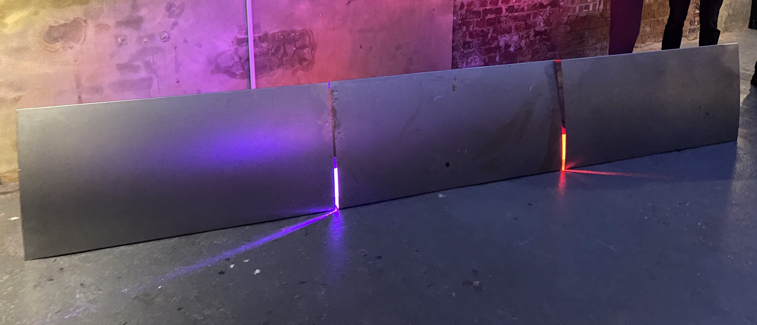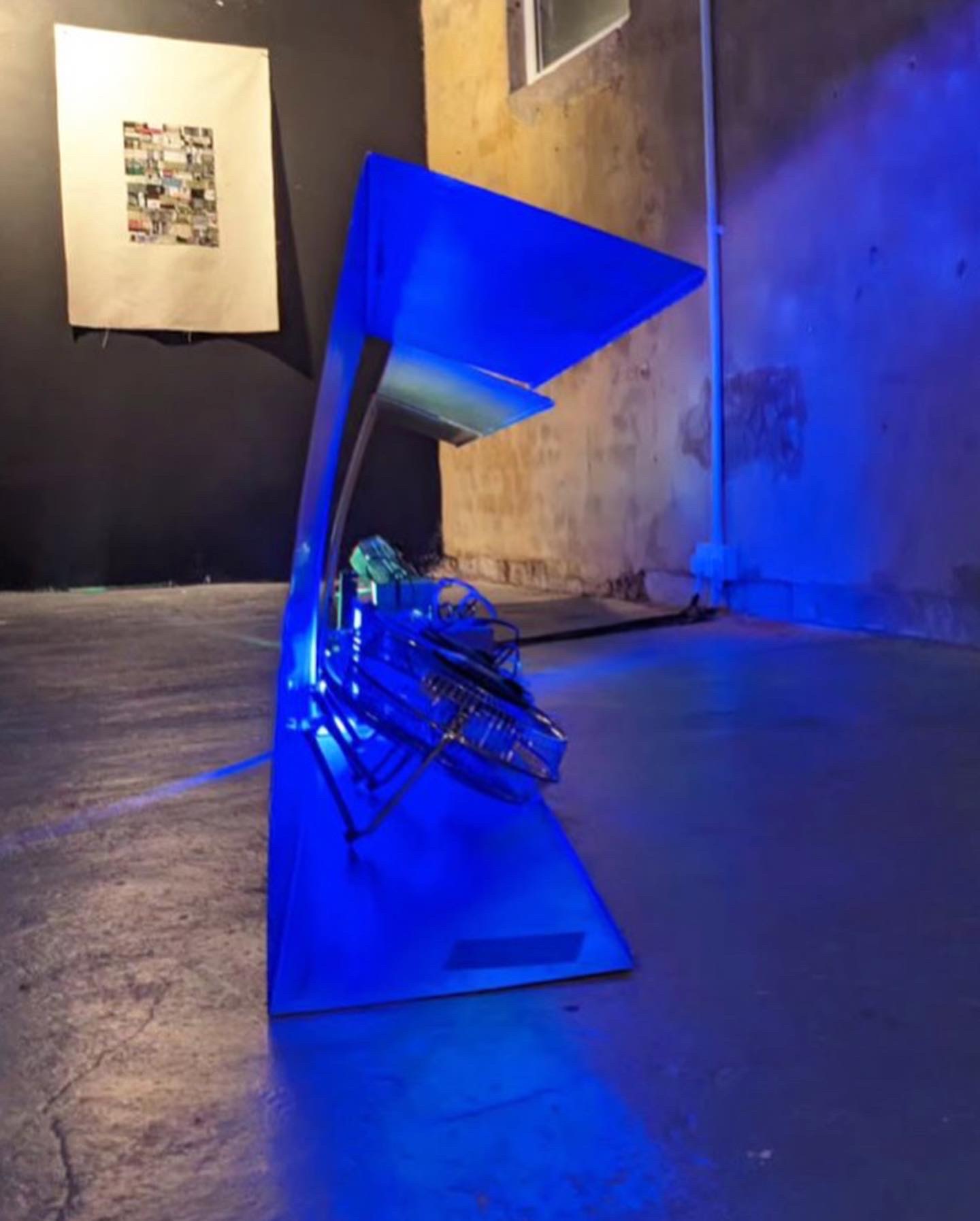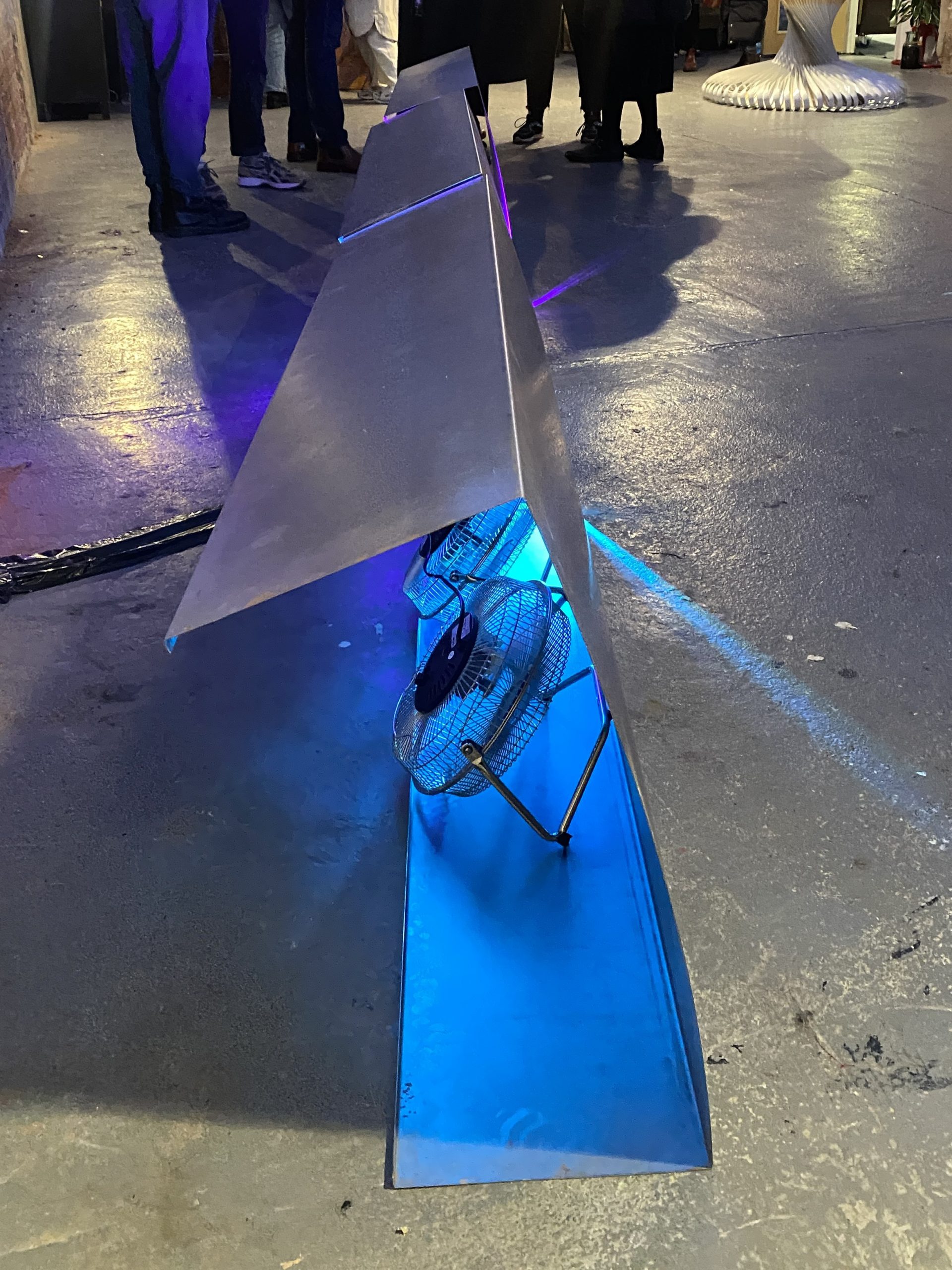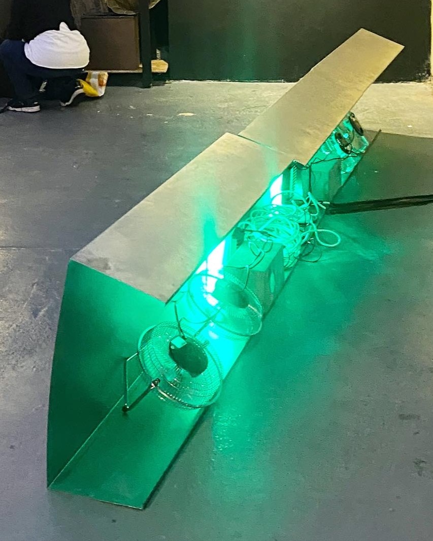 3 x folded steel sheets, programmable LED lights, electric fans. 2023